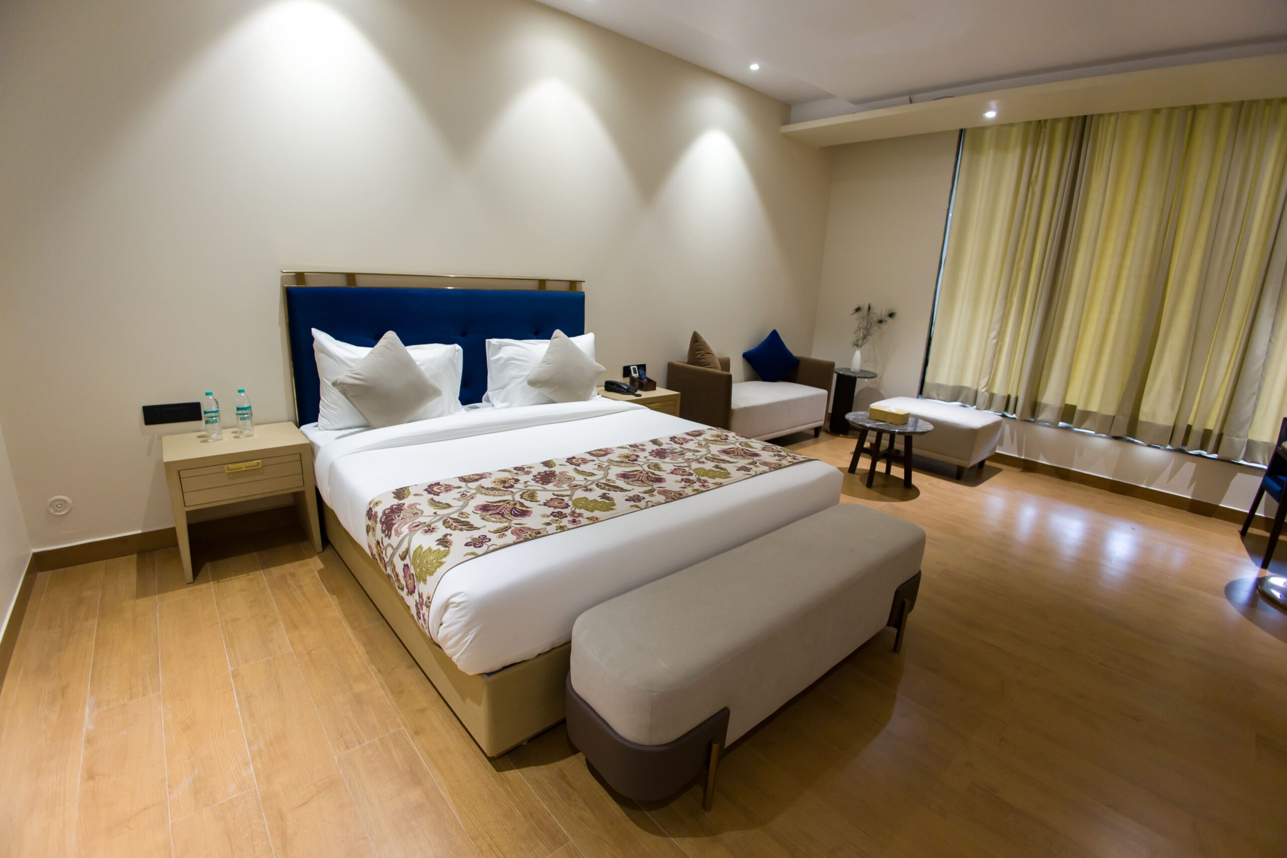 Experience comfort redefined with our 34 meticulously designed rooms featuring grand interiors, French windows, LED screens with DTH, mini refrigerators, tea/coffee makers, and round-the-clock room service.