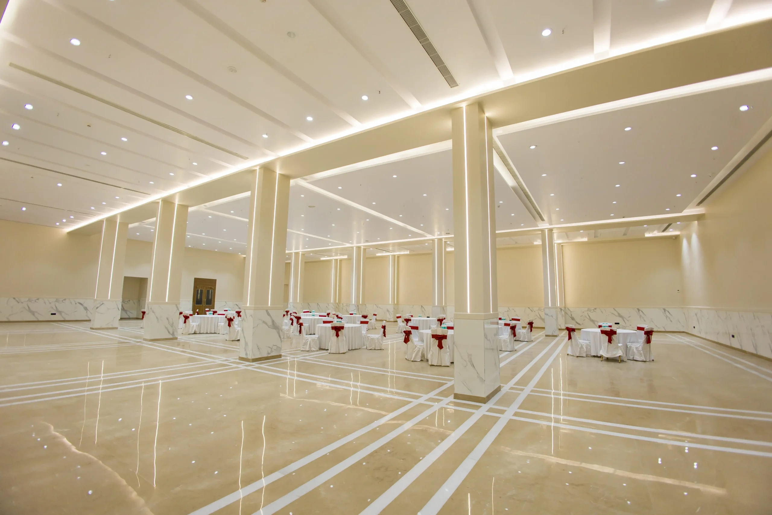 Our 8000 sq. ft. fully air-conditioned banquet hall with elegant marble flooring is one of the largest in Central India. Interconnected with our Open Lawn through three gates, it offers flexibility for events of all scales with dedicated media rooms and decorated buffet corridors.